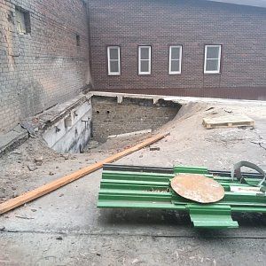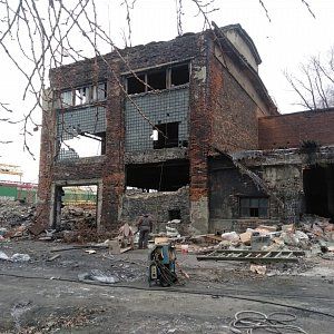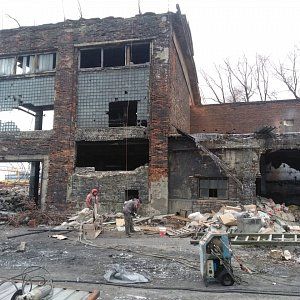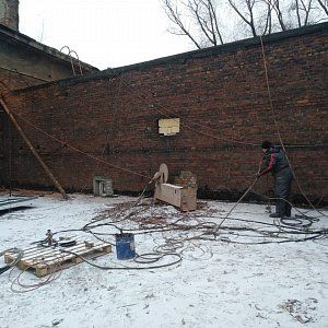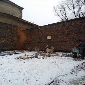 Необходимо было отделить одно здание от другого. Была применена канатная резка. В итоге было нарезано 22,75 м2 по бетону и 14,95м2 по кирпичу. Работы были выполнены за 7 дней.