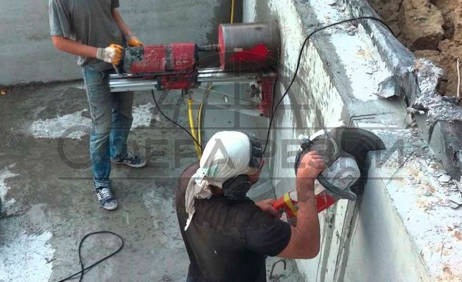 I would like to step back a little from the topic and clarify, that wall saws are perfect not only for dismantling, but also for cutting and expanding openings of various shapes, configurations and sizes. Penetrate to a depth of 650 mm. The whole process of cutting an opening in the bearing wall of a frame-monolithic house requires 3 to 5 hours. Moreover, the main part of the time is occupied by completely silent preparatory work (waterproofing on the floor; installation, connection and dismantling of equipment, etc.).