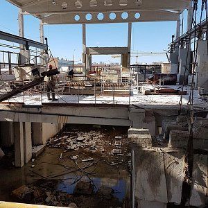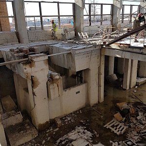 В рамках данной реконструкции было необходимо демонтировать старое оборудование и часть здания ГМЗ. Для демонтажа перекрытий и колонн нами была применена технология канатной резки. На объекте работало 2 бригады в дневную смену.