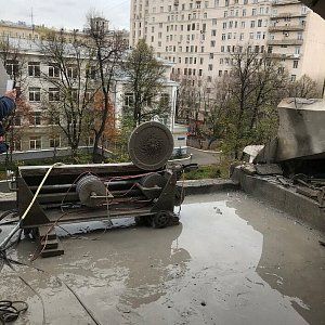 Перед началом демонтажа алмазной резкой было проведена качественное нанесения гидроизоляции для исключения протечек воды, потому что на одну смену потреблялось до 5 м3 воды, так как на время проведения работ по демонтажу отделения Либхерр-Руслэнд не переставал работать.
