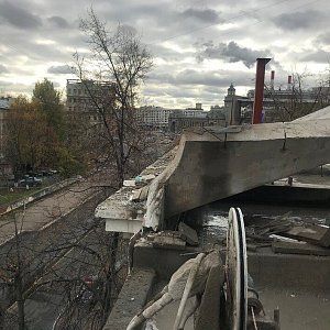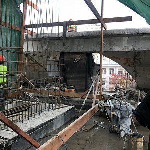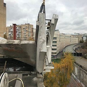 Из за согласования по вырубке деревьев, которые препятствовали установке башенного крана работы перенеслись на конец сентября 2018. Заявленный объем демонтажа по чертежам от заказчика 110 м3 Ж/Б конструкций.