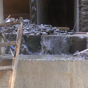 Канатная резка свайного ограждения проходила штатно, не считая случая когда в особо большие морозы (-27) у нас вмёрз канат в резе, пока оператор ходил на обед. В результате выход и положения был найден, наш бригадир нагрел сразу 3 электрочайника и по очереди лил из них кипяток в рез. В результате канат удалось "продёрнуть" и запустить машину канатной резки.