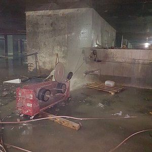 В основании башни федерация на -4 этаже парковки находился фундамент башенного крана при помощи которого этот самый небоскрёб и строили. Для демонтажа данного фундамента нами была использована технология канатной алмазной резки а также демонтаж гидроклином.