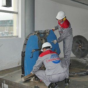 В общей сложности резка проёма в железобетонном перекрытии заняла 6 дней с учётом съёма отрезанных частей. Вывоз и утилизацию мусора после резки заказчик также поручил нам и мы включили это в смету. Так как наша команда имеет большой опыт работы по резке бетона, мы точно знаем на какие сегменты порезать бетон чтобы потом его более дешевым и удобным способом вывезти и утилизировать. В результате мы предлагаем одни из самых привлекательных цен на вывоз и утилизацию мусора и снимаем с заказчика тем самым лишнюю головную боль. Работы были выполнены в срок, мы подготовили фронт работы для отделочников и монтажников лифтового оборудования. На фото ниже Вы можете увидеть процесс начала резки проёма и уже готовый торговый центр и действующий лифт который установлен в тот самый проём резку которого производила наша команда.