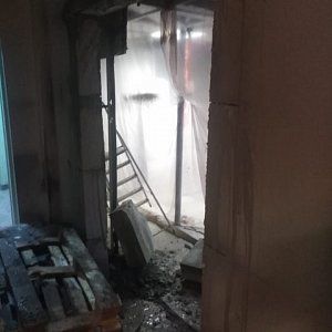 Стояла задача выпилить за 2 ночи проем 2200х13хх180 мм и сделать это без пыли, ручным резчиком с 2 сторон, работы выполнял Григорьев Владимир. Работы были выполнены точно в поставленный срок.