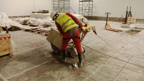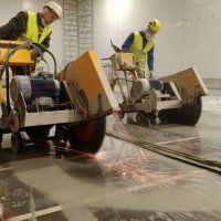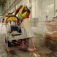 Нарезчик швов в работает только на ровных поверхностях, к примеру им можно резать проёмы под лестницы, деформационные швы, демонтировать перекрытия. В день оператор способен произвести около 50 метров резки. Так как шовнарезчик - тяжелое и не поворотливое оборудование режущее исключительно в пол, его имеет смысл использовать на больших и ровных площадках для демонтажа бетона. Если же надо сделать фигурный проём в перекрытии или прижать проём максимально к стенам, он уже не подойдёт.