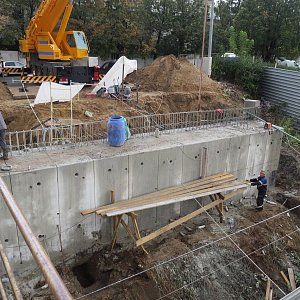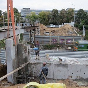 В октябре 2014г. наша молодая компания выйграла тендер на резку и демонтаж устоев эстакады. Работы производились с целью монтажа дополнительного ряда буронабивных свай. Новым проектом предусматривалось вместо временного переходного перехода из металла создание автомобильного переезда над жд путями с пешеходными тротуарами.